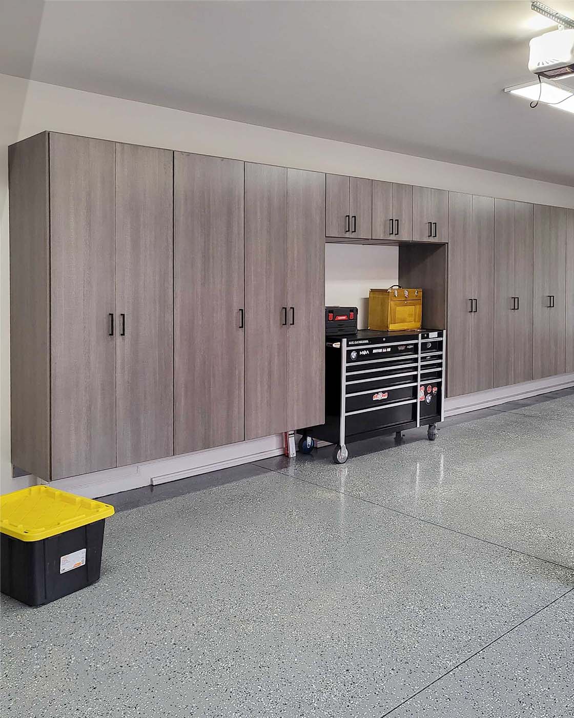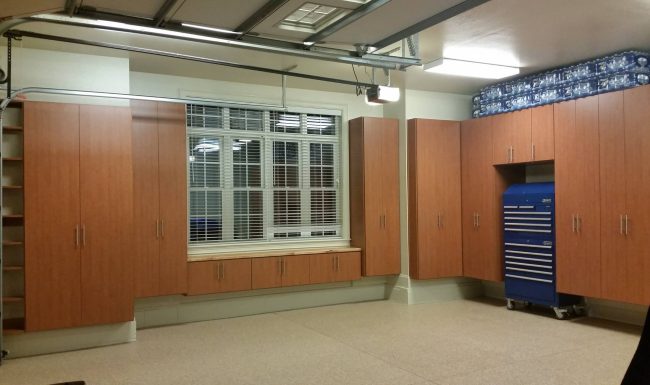 We want to create areas large enough to store your biggest items while maintaining the necessary space to park your car and move around freely. We use large deep cabinets with workstations in the open areas and narrow shelving and track systems in the closets.