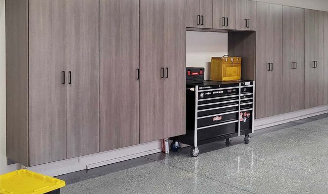 Closetpro understands that durability is paramount in a garage system, which is why we go the extra mile to ensure our products stay secure and long-lasting. Not only do we fasten our systems to the wall more times than other brands, but an additional ledge lag bolted for additional support strengthens the structure even more. Wider shelves call for 1″ thick material to keep it from sagging, and extra hinges on doors prevent the usual wobbly effect. All this to ensure that all of your items are stored safely and securely while also making your garage easier to clean.