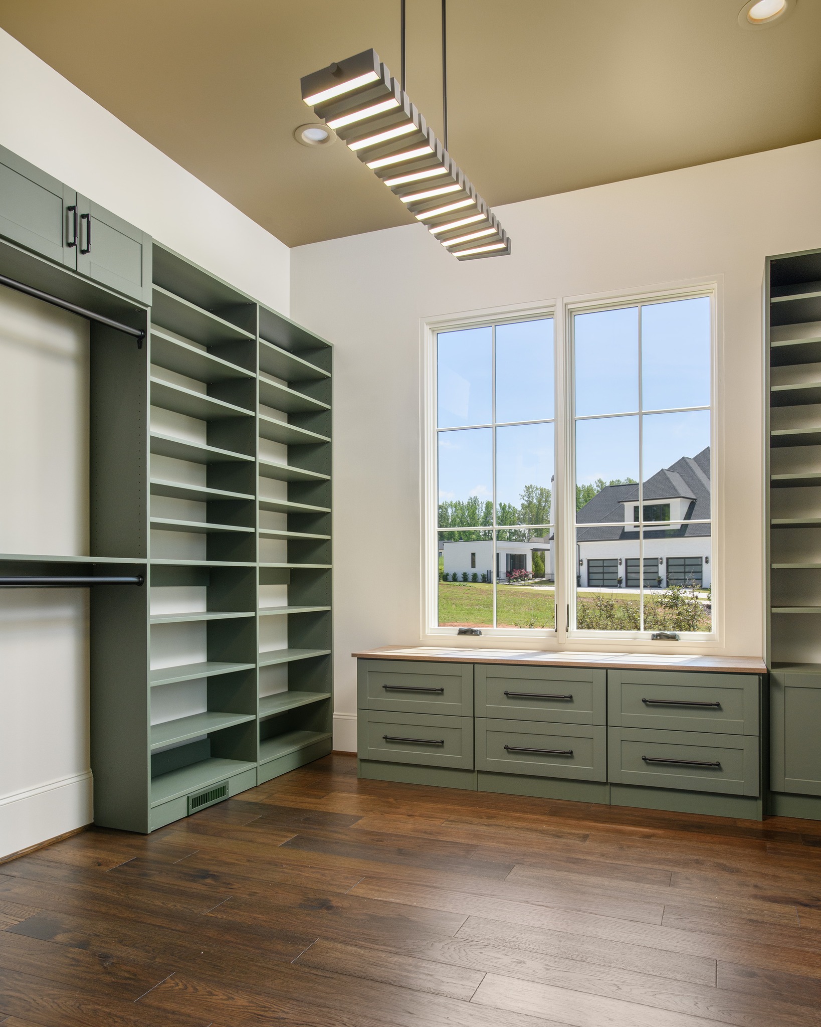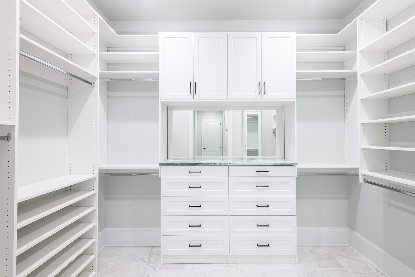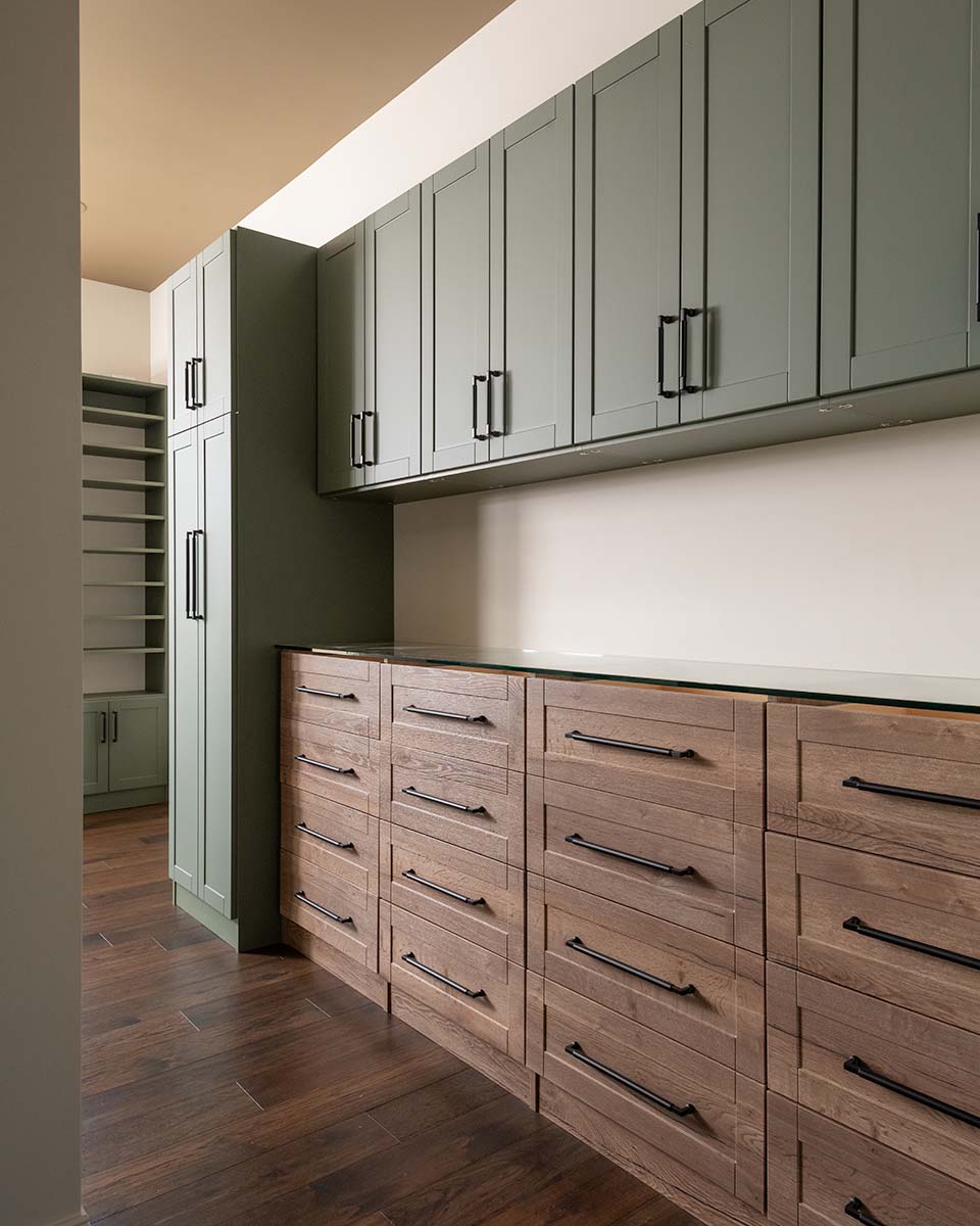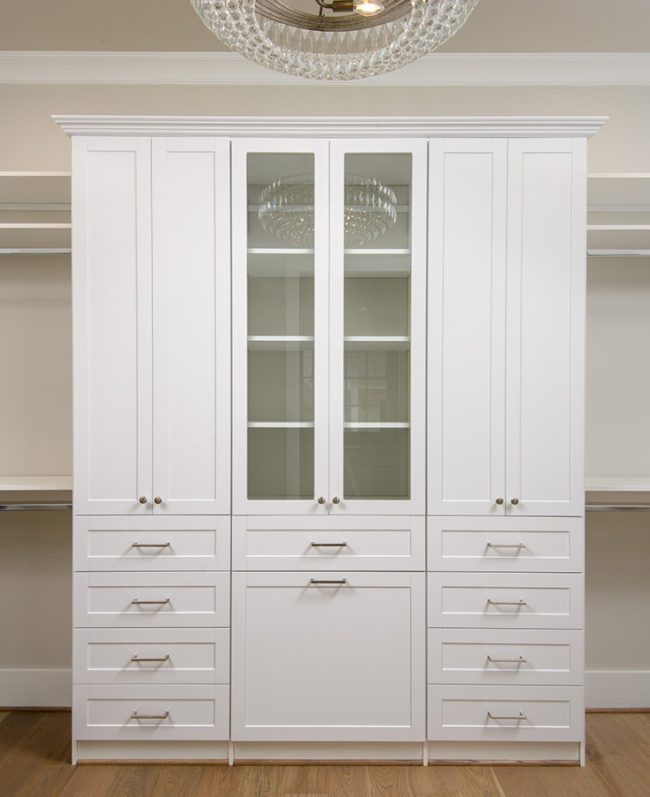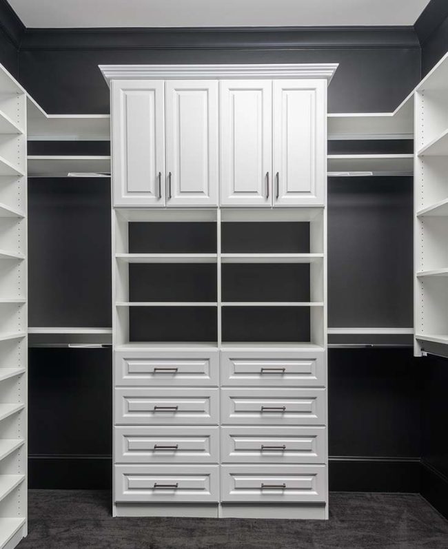 We offer a wide variety of products, including granite countertops, dovetail drawers, soft close drawers, and doors, as well as accessories. By arranging rods, shelves, and different depth components, you can square up a long skinny room and make it look larger.